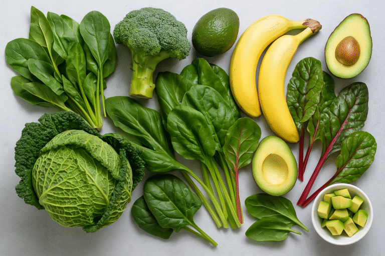 Spinach, kale, arugula, tomatoes, citrus, berries, and roasted veg deliver potassium, magnesium, and polyphenols that support blood pressure and endothelial function, especially when you’re also cutting sodium (DASH synergy).