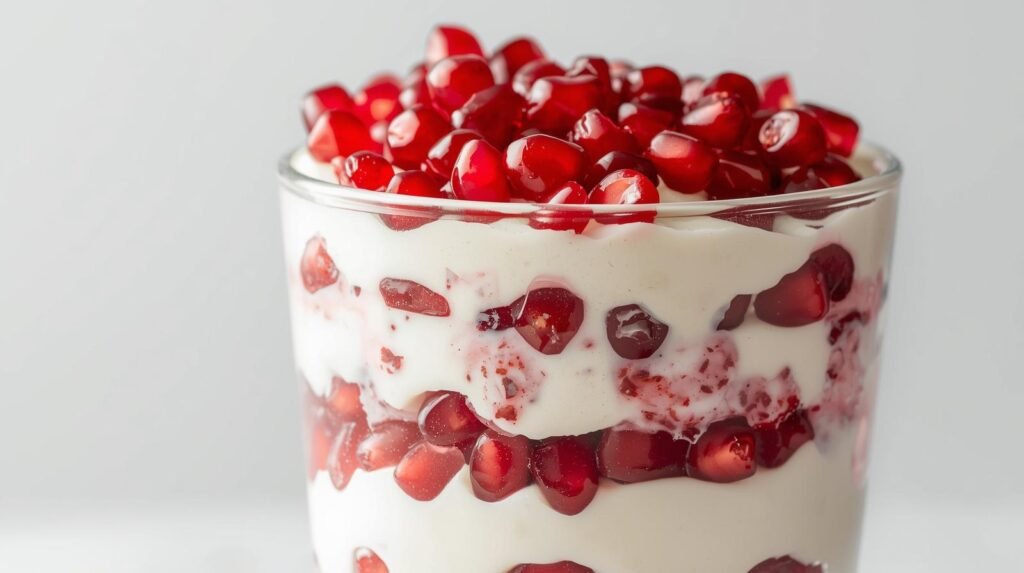 - Layer Greek yogurt with ½ cup pomegranate arils.